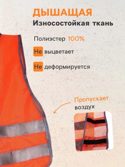 Жилет сигнальный, светоотражающий, оранжевый, 2 класс, размер 68×55 см, 60 г/м²