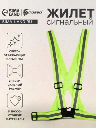 Жилет сигнальный TORSO, с наплечными лямками, регулируемый размер, салатовый